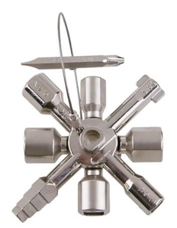 univerzálny kľúč pre otváranie elektrických rozvádzačov, plynových a vodných kohútov, pre klimatizáciu, ventiláciu a odvzdušňovanie kúrenia